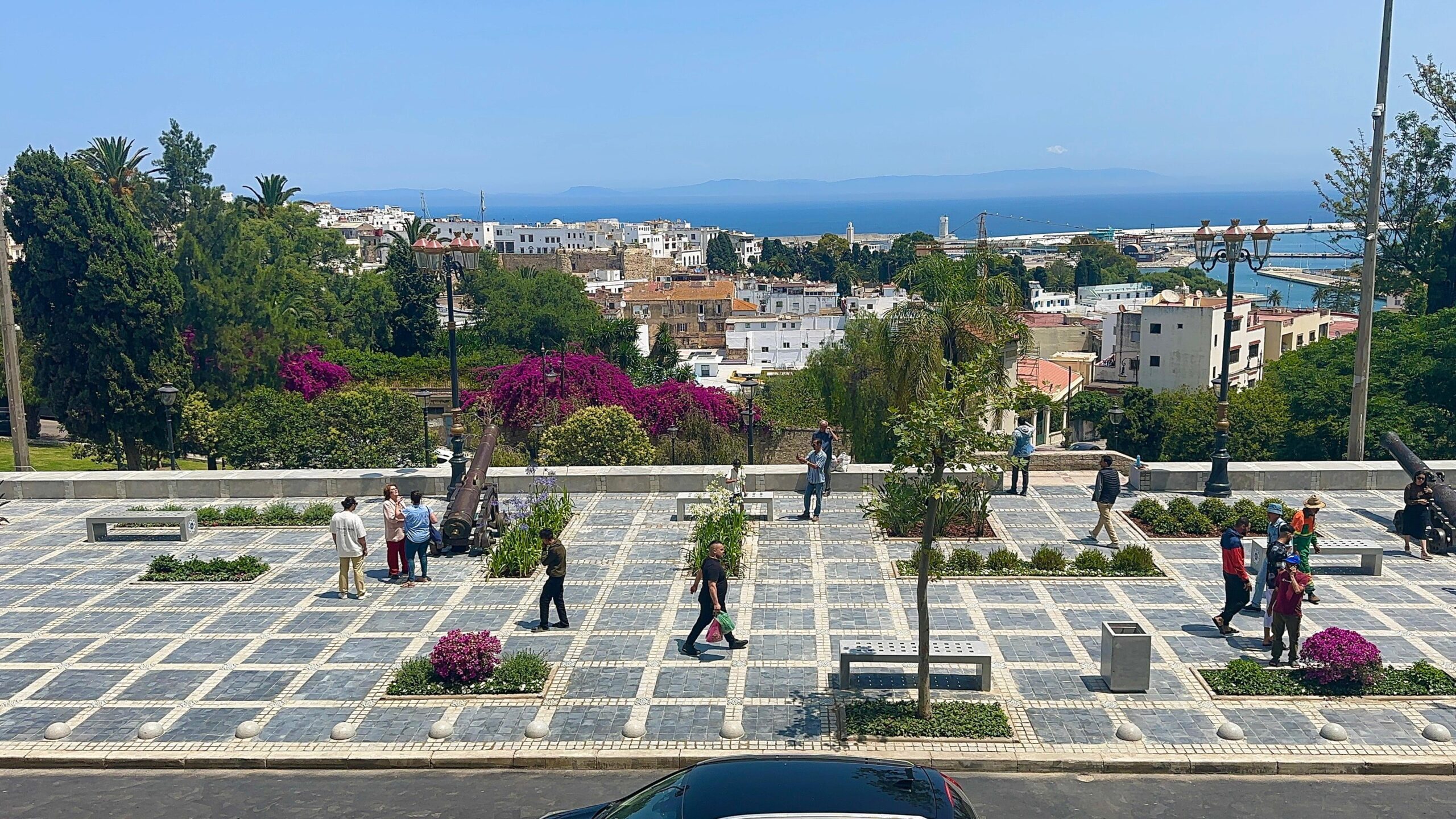 وإذا قمنا بتحليل الصور القديمة، سنكتشف أن السور، وهو سور قصير بعرض قد يصل لمتر واحد، قد استمر إلى حدود نهاية الخمسينات، حيث كان يجلس عليه زوار المنطقة من سكان المدينة والسواح الأجانب لرؤية المنظر البانورامي منه، فمنه نرى جزء من المدينة العتيقة والميناء ورأس مالاباطا وخليج طنجة وشواطئه ومضيق جبل طارق والساحل الجنوبي لإسبانيا. وهذا المنظر البانورامي، نظرا لأهميته وجماله، تم تصنيفه في عام 1947 ضمن التراث الوطني هو والمنظر البانورامي لصخرة سيدي اعمر، وذلك لأول مرة في المغرب لهذا الصنف من التراث. وفي أواخر الخمسينات أو بداية الستينات تم هدم السور وتم توسيع رقعة الساحة وتهيئتها على شكل حديقة، وتوالت مشاريع التهيئة إلى حدود الآن.